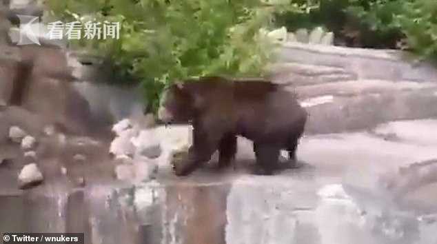 棕熊不敢跳下去,