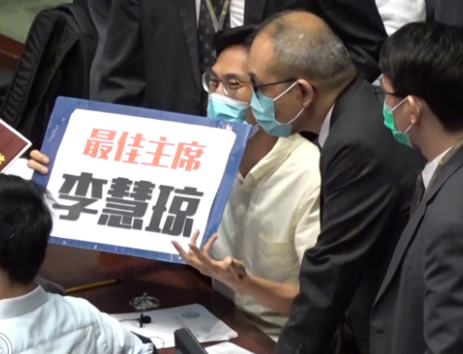 立法會恢復二讀辯論《國歌條例草案》,期間議會陣線議員朱凱廸展示寫上「最佳主席李慧琼」的標語,主席梁君彥認為標語有侮辱成份,命令朱凱廸離場,並暫停會議。梁君彥最終裁決,朱凱廸展示的紙牌是反諷,冒犯及侮辱李慧琼,認為是不可接受。他說,若再有議員展示有關紙牌,將不會再作警告,直接命令議員離席。