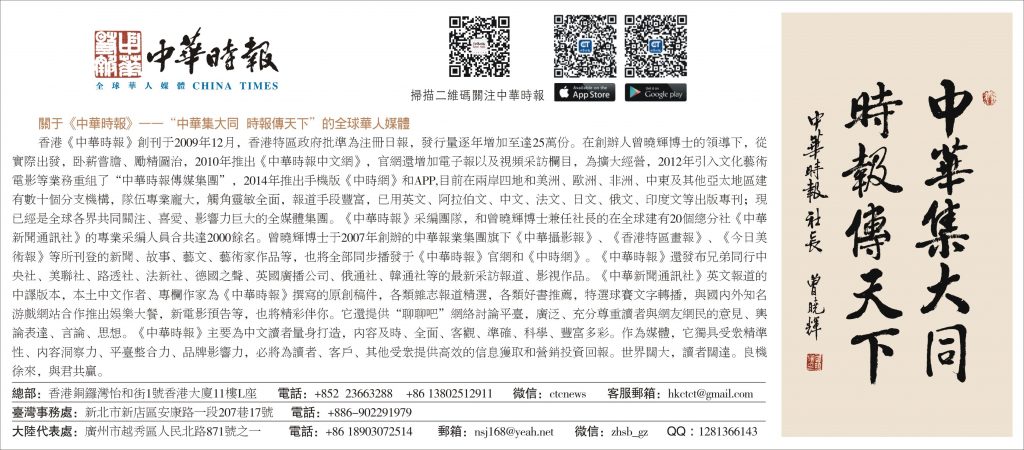 香港中華時報成立於2009年,致力於為受眾提供全面而獨立的報道,並把真相告訴受眾,以及展現多種角度的評論分析。文中評論分析不代表中華時報立場和觀點。