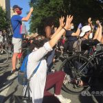 佛洛伊德的弟弟Terrece Floyd在其他示威者的陪同下,到哥哥遭警方压制的事发地点致哀