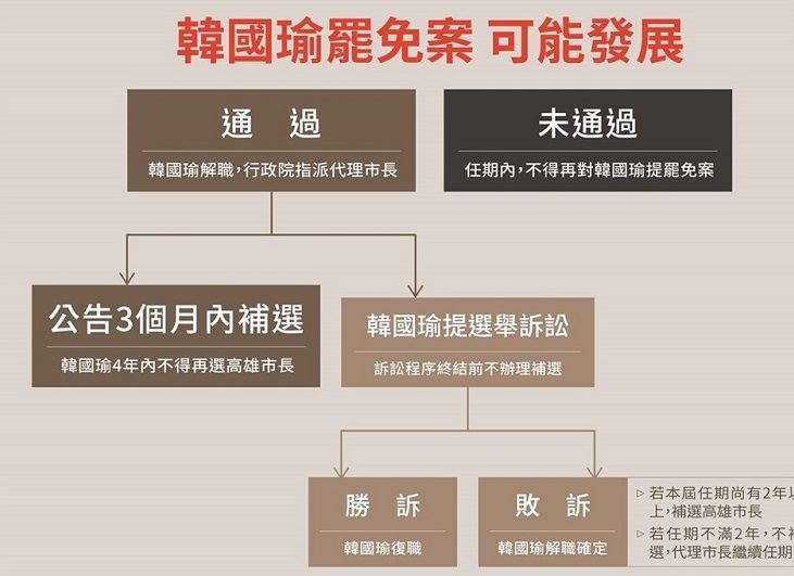 若最終韓國瑜勝訴,則罷免通過無效,韓國瑜可恢復職務;若韓國瑜敗訴,則確定解職。