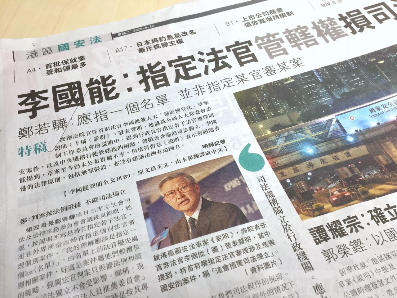 首任終審法院首席法官李國能今天在報章撰文認為,「港區國安法草案」的說明中,提到行政長官有權指定若干法官審理涉及國家安全的案件,以及中央機構可行使管轄權,會損害本港司法獨立。