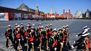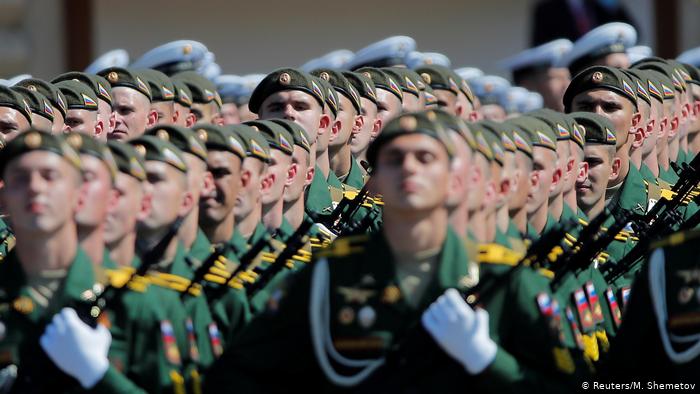 俄罗斯本计划今年5月9日”胜利日”在红场举办阅兵,纪念战胜法西斯德国75周年。因新冠疫情影响,这一庆典推迟到6月24日,这是1945年苏联首次举行胜利阅兵庆典的日子。在莫斯科,13000名士兵参加了此次规模空前的阅兵游行。除莫斯科外,俄罗斯其它城市也有阅兵等庆祝活动。据俄国防部称,共有64000名士兵参加了各地举办的阅兵。大型集会在莫斯科尚未被重新允许,周三的阅兵是个例外。队列中的士兵未戴口罩,也未保持安全距离。