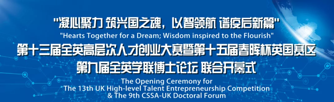 2020年7月4日上午10点,第十三届全英高层次人才创业大赛暨第十五届“春晖杯”(英国赛区)暨第九届全英学联博士论坛联合开幕式准时启动。