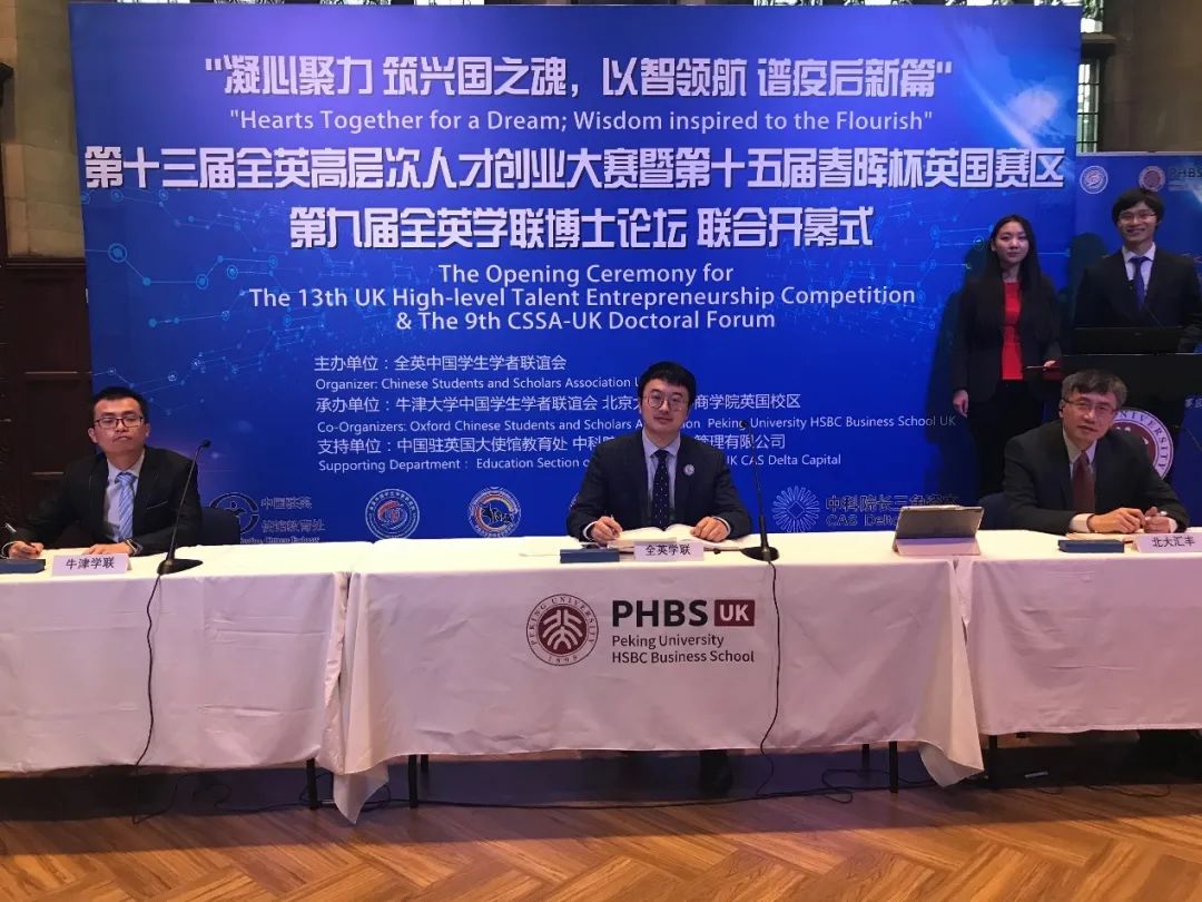 (中华时报英国总社记者:卢少芳,唐成龙 特约通讯员:刘玮琛、魏伊培)第十三届全英高层次人才创业大赛暨第十五届“春晖杯”(英国赛区)暨第九届全英学联博士论坛联合开幕式于2020年7月4日在北京大学汇丰商学院英国校区顺利举办,此次活动采取上下午场线上直播的方式进行,由全英创赛与全英博士论坛、“春晖杯”英国赛区等三项活动赛事有机整合,以创新和发展为驱动力,以学术与交流为凝聚力,展现疫情下在英学生学子的新时代风貌。全英学联与牛津大学,北京大学汇丰商学院英国校区携手,此次活动特邀请驻英使馆教育处、北京大学汇丰商学院、牛津大学科创中心等相关专家,学者,投资单位在线与同学们开展主题分享与交流。