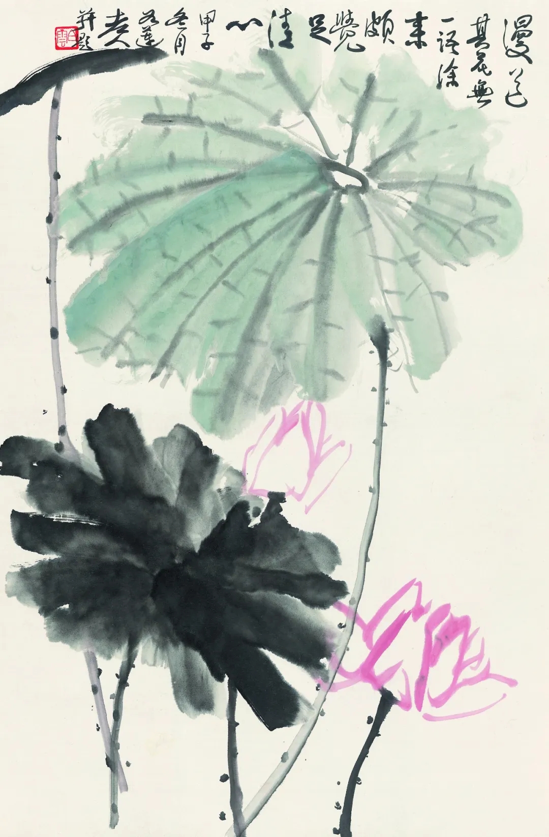 我理解的刘知白从富甲的江南鱼米之乡,因避战乱流落贵州生活五十多年,期间又挺过霍乱染身的痛楚,爱妻曾被日本兵掳去当洗衣妇的和中晚年丧女的精神苦痛,文革中期(一九七一年)又被下放龙里洗马山区务农。他既要承担十一位儿女的培育之生活重任,更要在艺术追求不断超越,可谓披荆斩棘历尽沧桑。他曾以法、守、攻、化构建艺术蓝图,我觉得他更多汲取道家文化的灵性,尤如白云,淡然、飘逸、灵动和云雨化境。当然也有着如莲的佛性,启示众生。