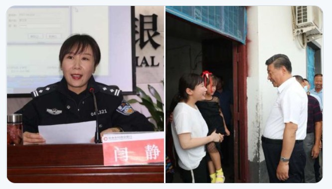 有网友发现,习近平日前前往民宅慰问的一名抱着孩子的女性灾民,疑似是阜南县公安局治安大队的副大队长。
