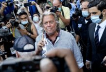 班农 (Steve Bannon)是美国总统特朗普2016年大选战略顾问。特朗普胜选后,班农进入白宫继续担任首席战略顾问。 他在周四 (8月20日)被指控在美墨边境筑墙募款活动中欺骗捐助者,不过他在庭上并不认罪。