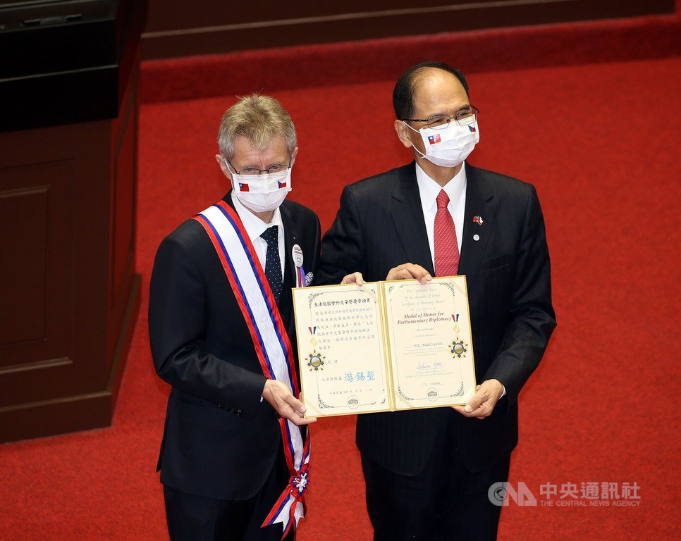 維特齊(Miloš Vystrčil)8月30日率領89人的訪問團訪台,今天到立法院參訪並發表演說;游錫堃在議場致詞歡迎,也代表立法院致贈紀念議事槌、立法院國會外交一等榮譽獎章給維特齊。