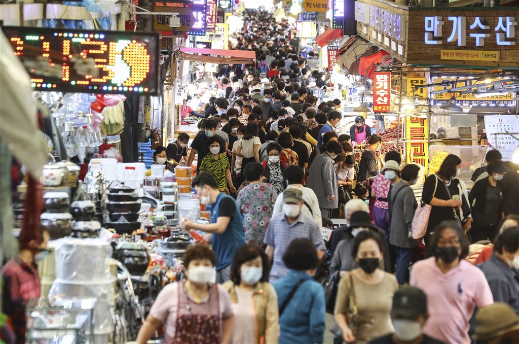 韓國18日確診感染新增126例,累計確診2萬2783例。圖為釜山釜田市場採購人潮。(韓聯社)