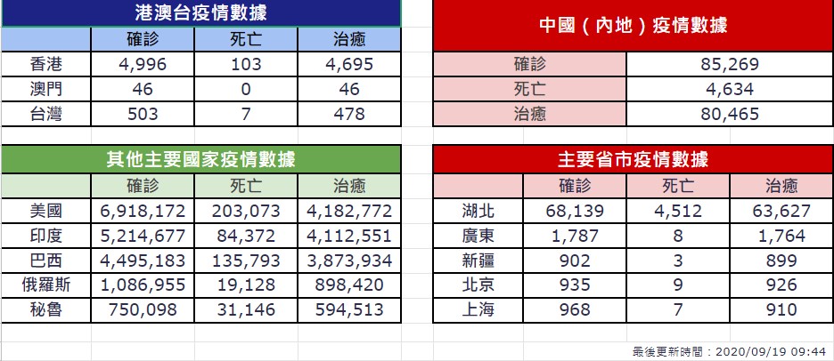 9/19新冠肺炎全球最新情報