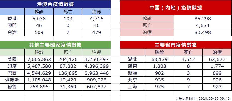 9/22新冠肺炎全球最新情報 – ChinaTimes中華時報