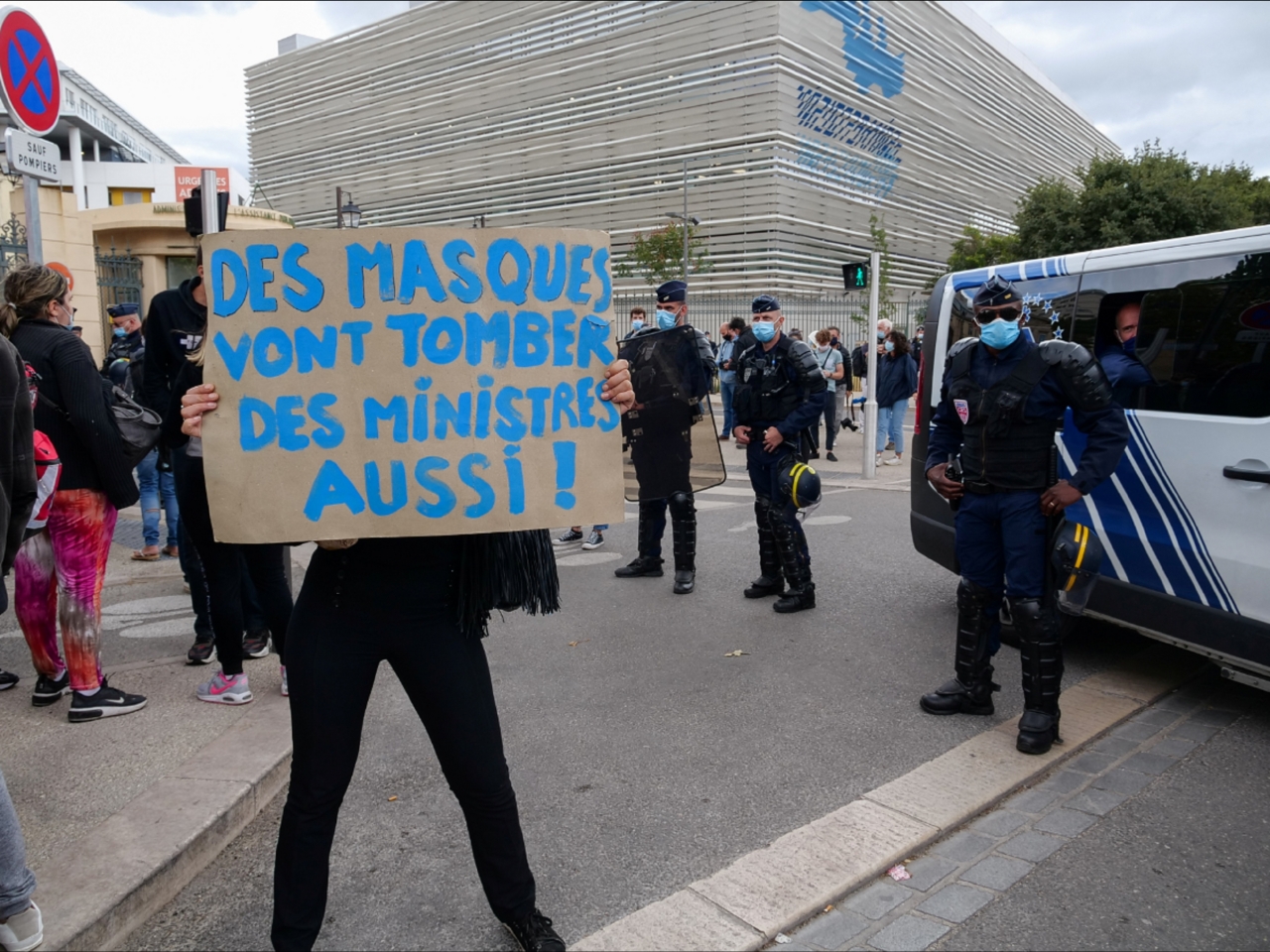 馬賽有數百名餐廳及酒吧從業員,聚集在商業法庭外,抗議停業措施。(路透社)