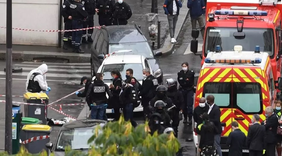 9月25日上午11点45分,一名男子持砍刀在《查理周刊》原办公室大楼前袭击了两名媒体工作人员,这一男一女正在楼外吸烟。法国电视2台下属节目制作公司Premières Lignes主要负责人莫雷拉(Paul Moreira)告诉法新社记者,这两名工作人员的伤势很严重。