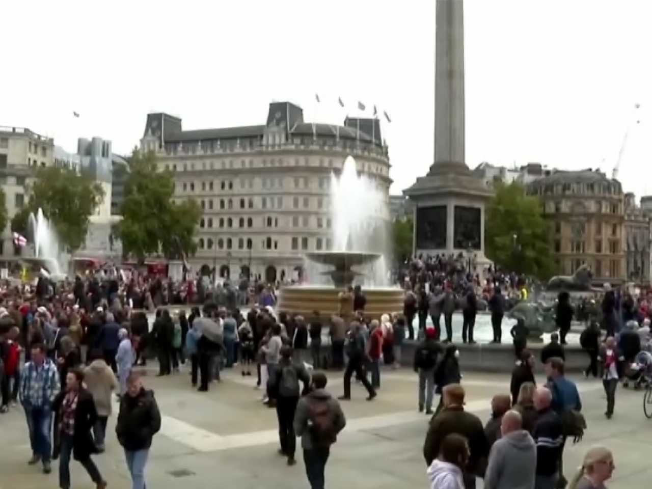 數以千計示威者在特拉法加廣場聚集,部分人未有保持社交距離及無戴口罩,代表在場集會及發言大約3小時,有人批評政府提出的限制措施,未經國會批准,警方指廣場上的人沒有按照風險評估做好防疫措施,存在傳播病毒的風險,要求示威活動解散,示威者向警員掟水樽,警方揮動警棍警告示威者後退。