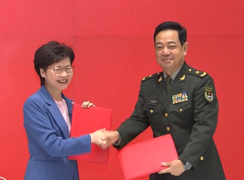 (中華時報/華聞社9月29日香港電)特區政府早上正式將中區軍用碼頭移交解放軍駐港部隊。行政長官林鄭月娥在移交儀式上致辭時表示,長約150米的中區軍用碼頭,是特區需為駐軍重建並供使用的最後一項軍事設施,移交碼頭後就全面履行當局有關責任。