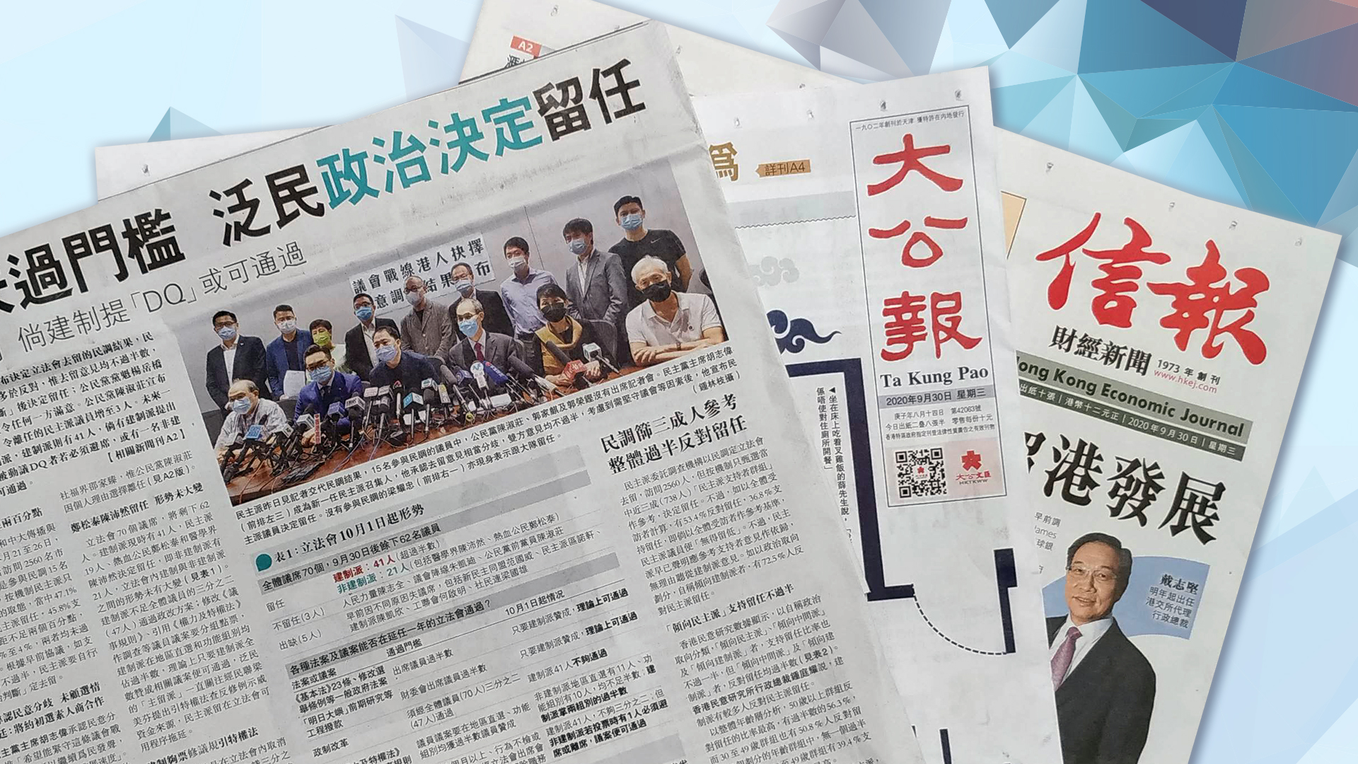 《明報》﹣ 民調未過門檻 泛民「政治決定」留任 剩21非建制 倘建制提「DQ」或可通過