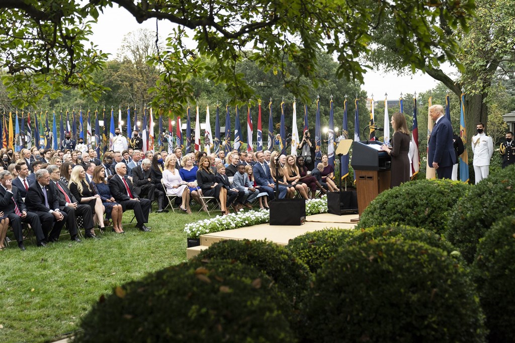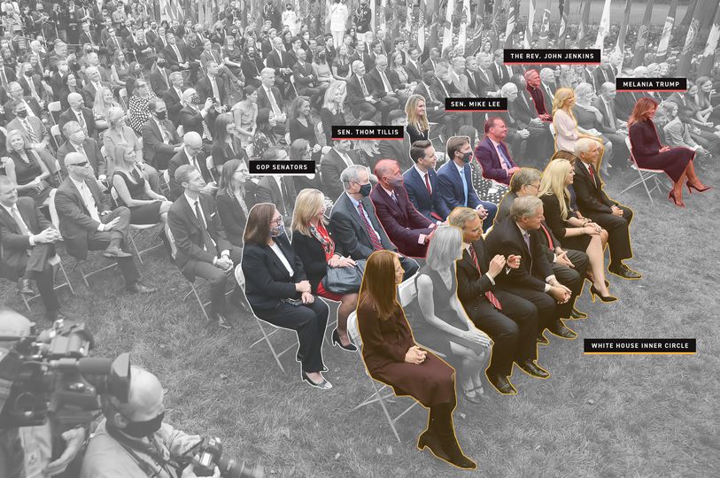 「今日美國報」(USA Today)報導,特朗普9月26日宣布提名巴瑞特(Amy Coney Barrett)為聯邦最高法院大法官的場合上,上述9人中有6人出席,其中包括第一夫人梅蘭妮亞(Melania)、前白宮顧問康威(Kellyanne Conway)、共和黨猶他州聯邦參議員李(Mike Lee)、共和黨北卡羅來納州聯邦參議員提里斯(Thom Tillis)、聖母大學(University of Notre Dame)校長詹靜思(John Jenkins),以及1名專跑白宮的記者。