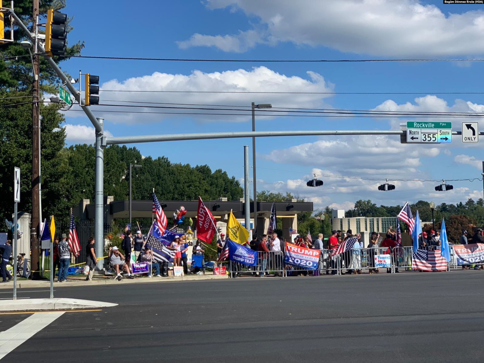 总统随后在特勤局特工跟随下,乘坐一辆装甲SUV车,短暂离开了沃尔特·里德国家军事医疗中心,驶过医院外挥舞旗帜欢呼的人群。