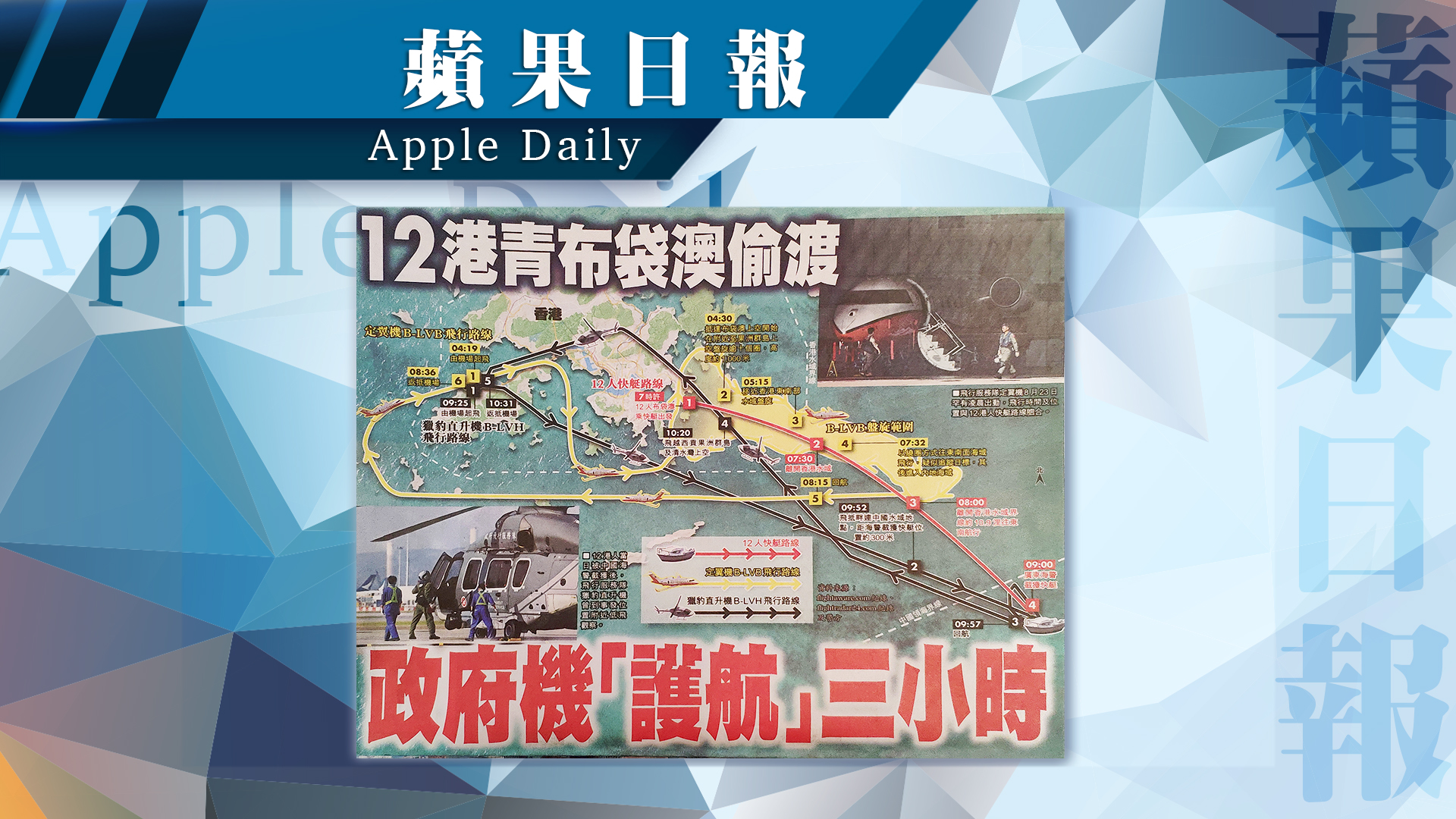 《蘋果日報》﹣ 12港青布袋澳偷渡 政府機「護航」三小時