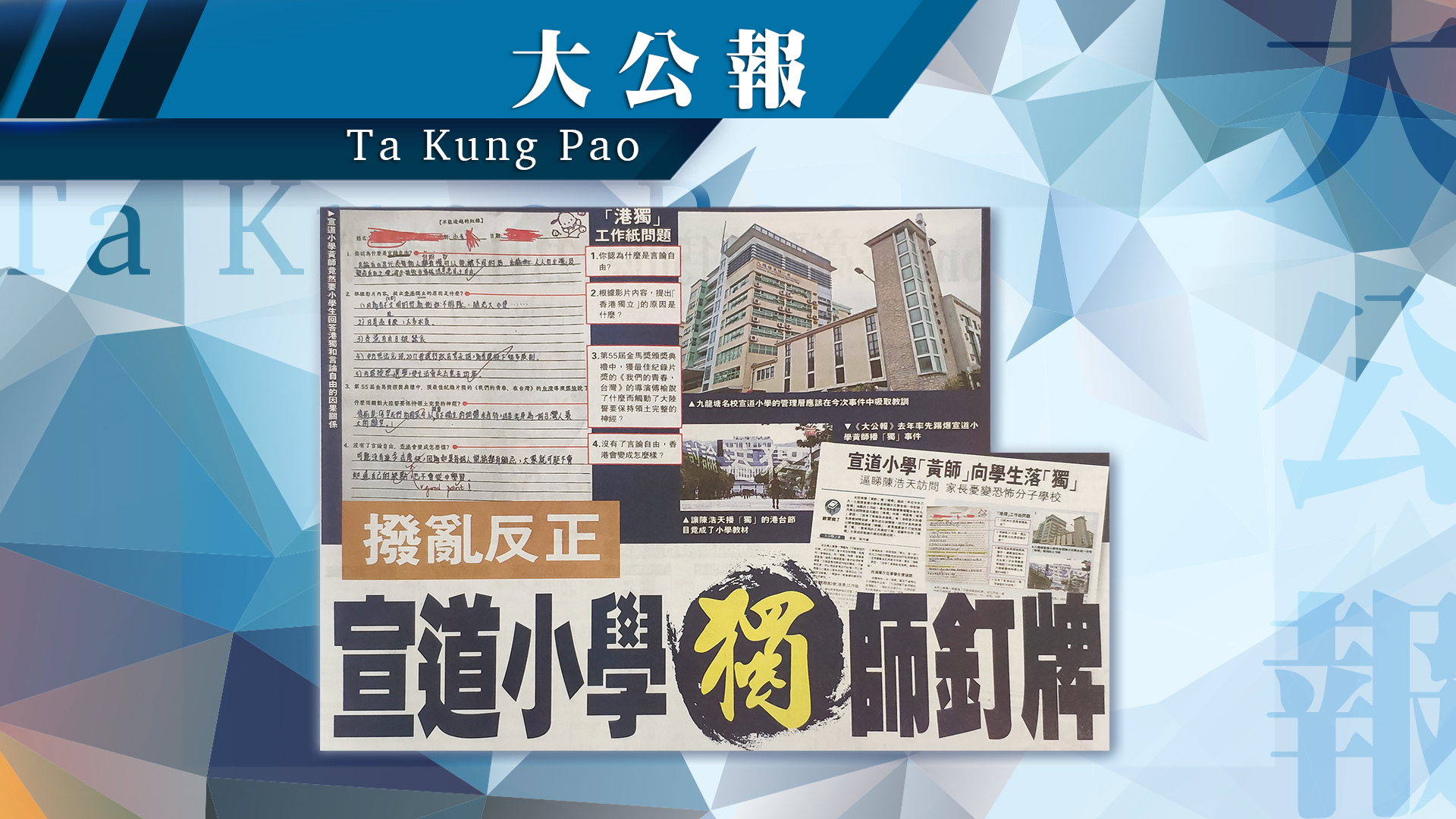 《大公報》﹣ 整肅亂象 宣道小學獨師釘牌