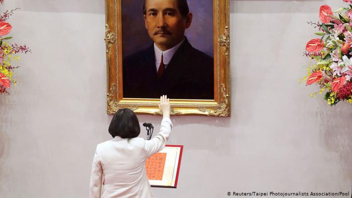 蔡英文时代 2016年的大选中,民进党主席蔡英文以超过56%得票率的绝对优势,击败朱立伦、宋楚瑜,成为台湾历史上第一位女总统。蔡英文拒绝承认“九二共识”。在2019年1月1日的新年讲话中,蔡英文提出“四个必须”,喊话北京“必须正视中华民国台湾存在的事实” ,并将中国“试图介入台湾政治与社会的发展”视为台湾当前“最大的挑战”。