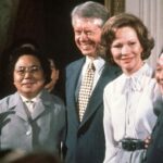 “一国两制” 同样在1979年1月1日,美国与中华人民共和国建交(图为时任美国总统卡特访华),与中华民国断交,同时通过《台湾关系法》。在该背景下,当时已经掌握中共实权的邓小平提出“一国两制”的构想。该政策被用在解决香港和澳门回归问题上。