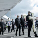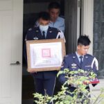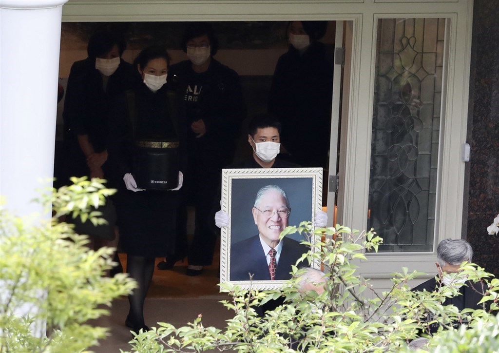 李登輝移靈車隊今天上午自翠山莊出發,李登輝的孫女李坤儀身著黑衣手捧骨灰罈、李坤儀夫婿趙贊凱手捧李登輝遺照,李登輝女兒李安妮等家屬也隨行送別李登輝最後一程。
