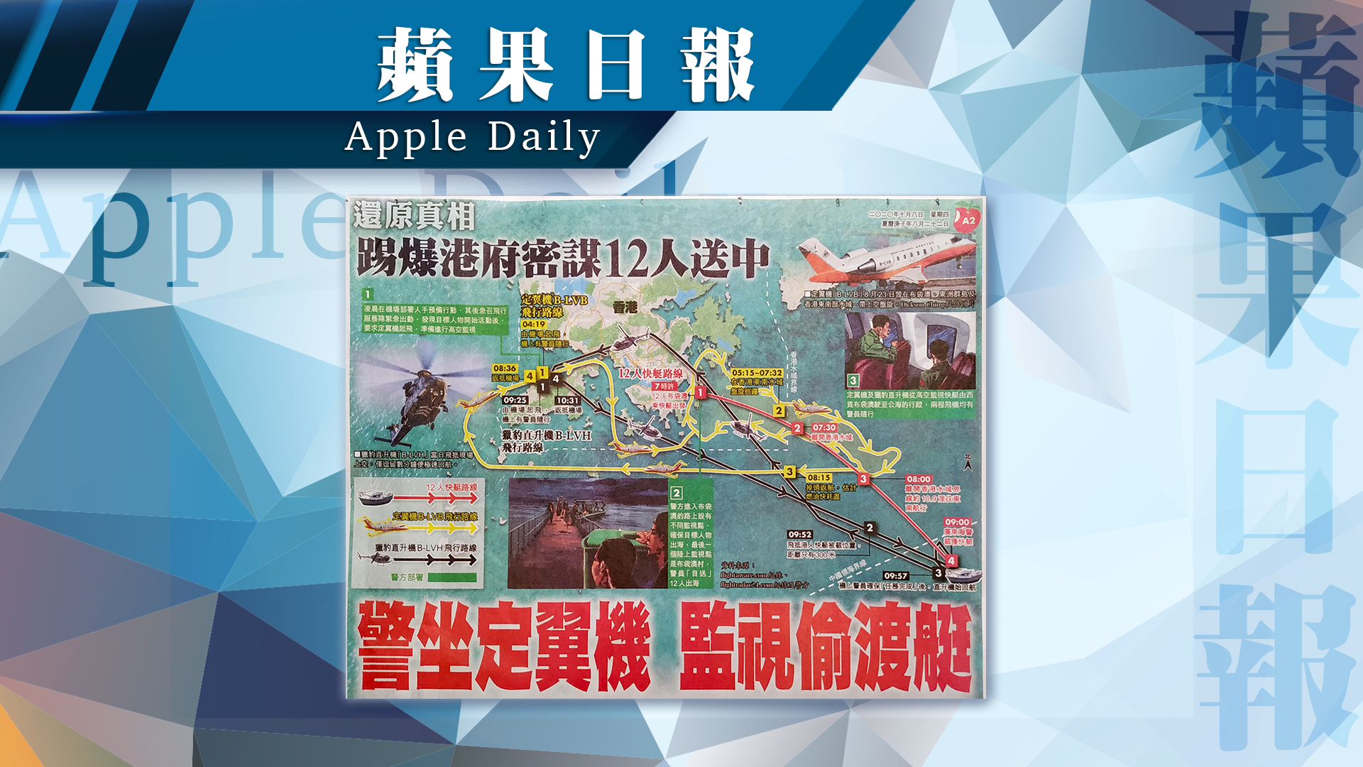 《蘋果日報》﹣ 踢爆港府密謀12人送中 警坐定翼機 監視偷渡艇