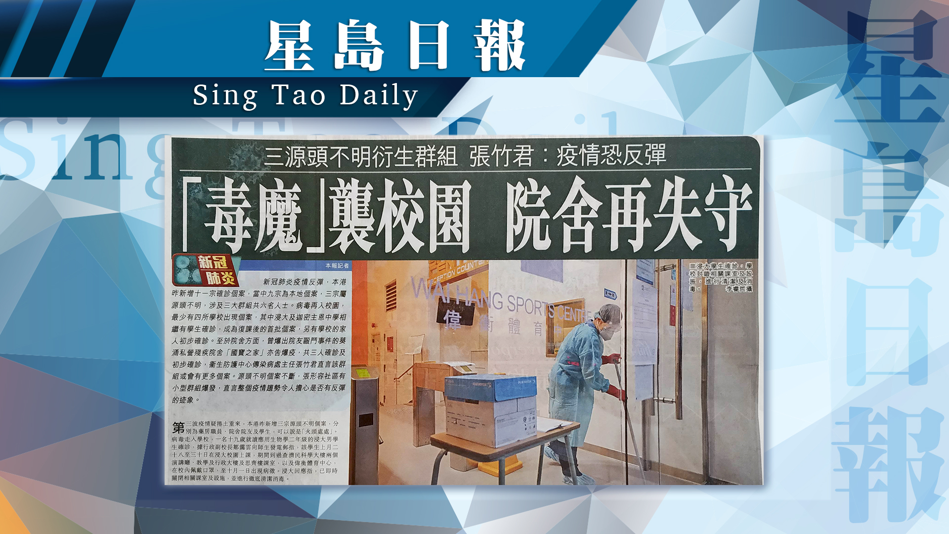 《星島日報》﹣ 三源頭不明衍生此群組 張竹君:疫情恐反彈 「毒魔」襲校園 院舍再失守