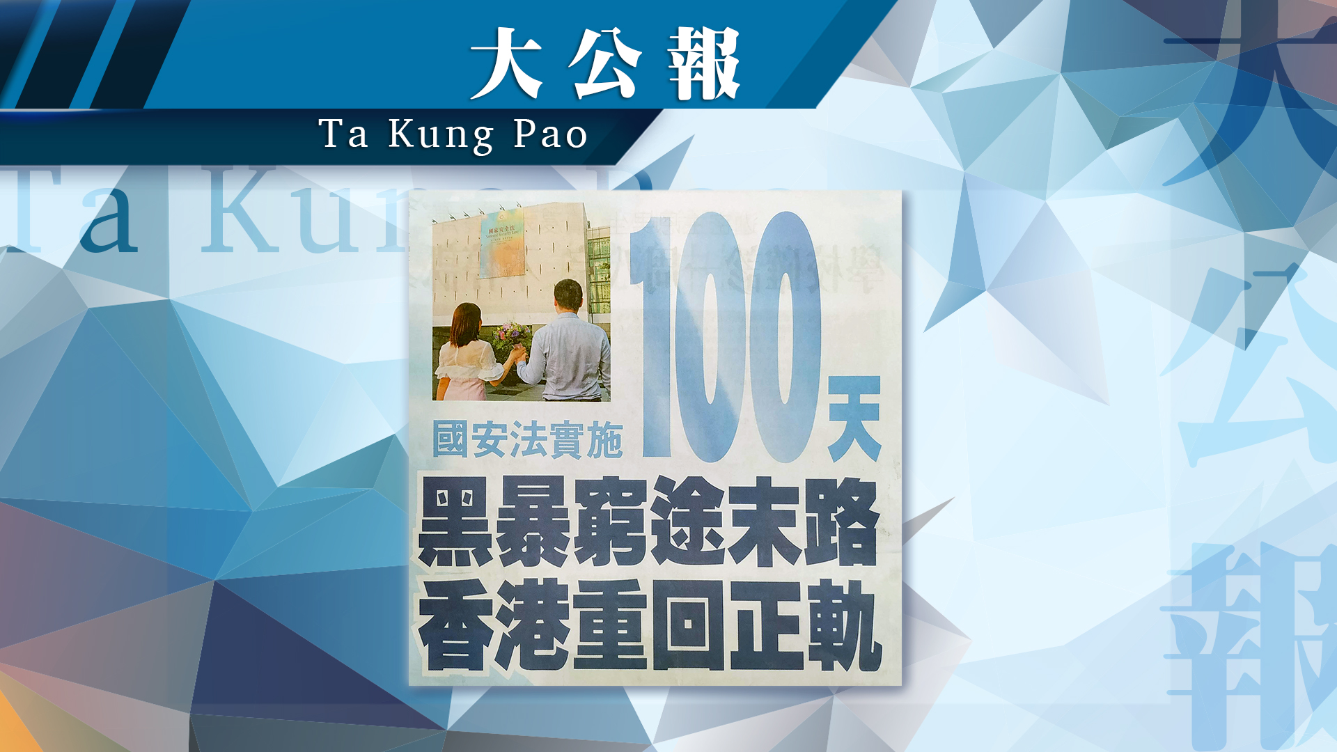《大公報》﹣ 定海神針 黑暴窮途末路 香港重回正軌