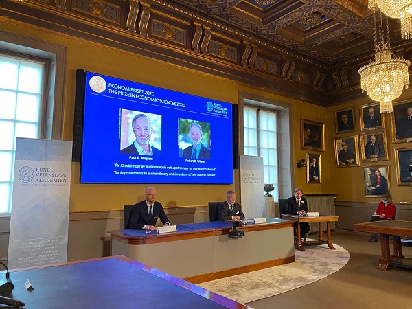 (中华时报/华闻社10月12日电)本年度诺贝尔经济学奖的得主是72岁的美国人保罗·米尔格龙(Paul R. Milgrom)和83岁的罗伯特·B·威尔逊(Robert B. Wilson)。瑞典皇家科学院周一在斯德哥尔摩宣布,将2020年度诺贝尔经济学奖授予他们是为表彰他们在拍卖理论研究领域所做的工作。诺奖委员会在陈述颁奖理由时指出,比尔格龙教授和威尔逊教授“完善了”拍卖理论,并发明了拍卖的“新形式”。宣布颁奖决定时,主持人象征性地落下拍槌,以强调拍卖活动对从电力股市到碳排放执照的无所不包的经济生活的重要性。