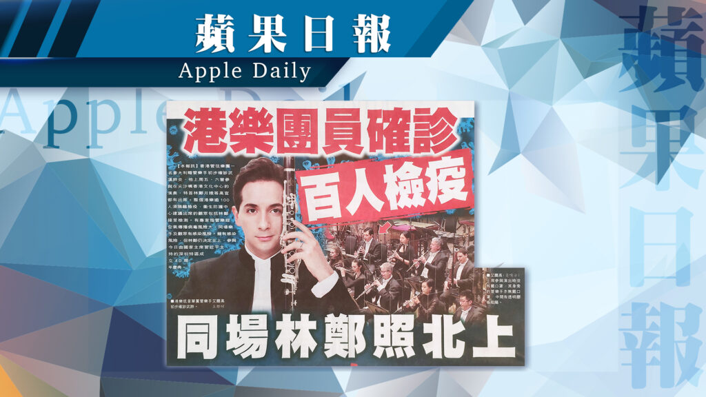 《蘋果日報》- 港樂團員確診百人檢疫 同場林鄭照北上