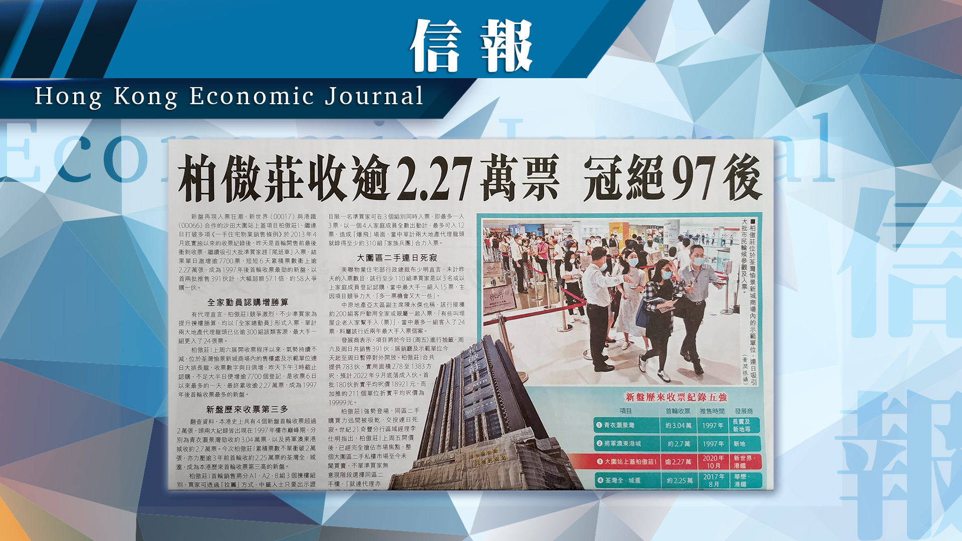 新盤再現入票狂潮,新世界與港鐵合作的沙田大圍站上蓋項目柏傲莊I,繼連日打破多項《一手住宅物業銷售條例》於2013年4月底實施以來的收票紀錄後,昨天是首輪開售前最後衝刺收票,繼續吸引大批準買家趕「尾班車」入票,結果單日激增逾7700票,短短6天累積票數衝上逾2.27萬張,成為1997年後首輪收票最勁的新盤,以首兩批推售391伙計,大幅超額57.1倍,約58人爭購一伙。