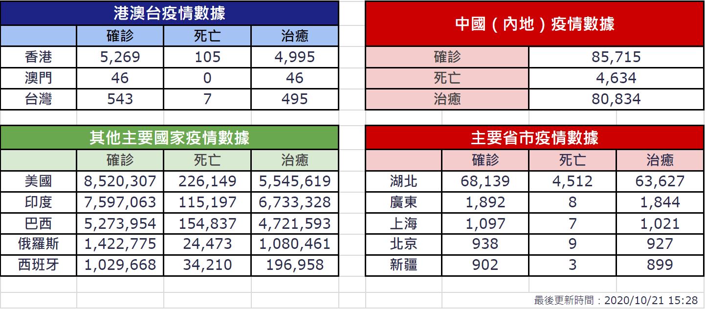 中華時報/華聞社10月21日香港電)香港新增8宗新型冠狀病毒確診個案,殘疾人士院舍「國寶之家」群組再多1人確診,患者是66歲男子,前日發病。