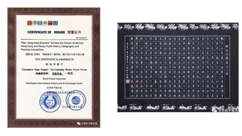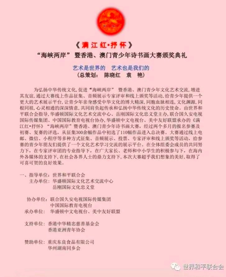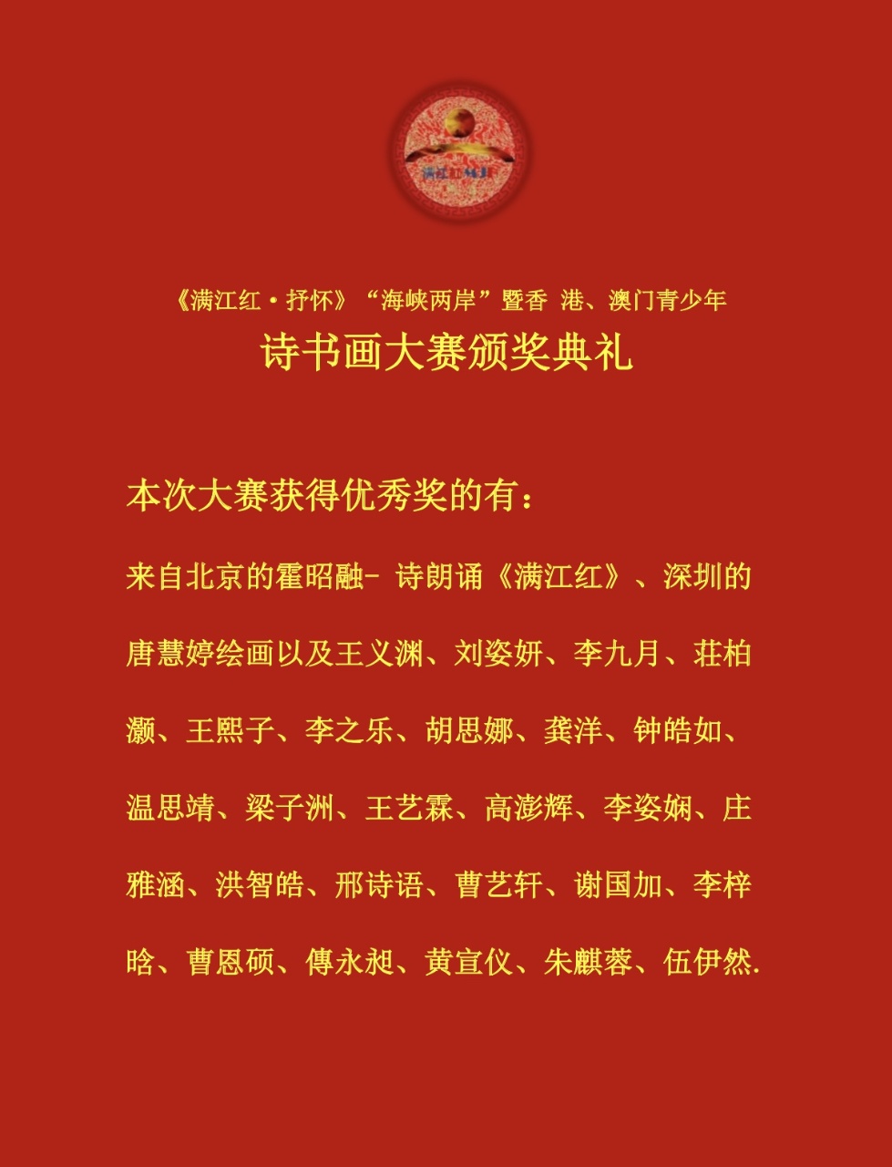 (本文由《满江红· 抒怀》“海峡两岸”暨香港、澳门青少年诗书画大赛组委会供稿)