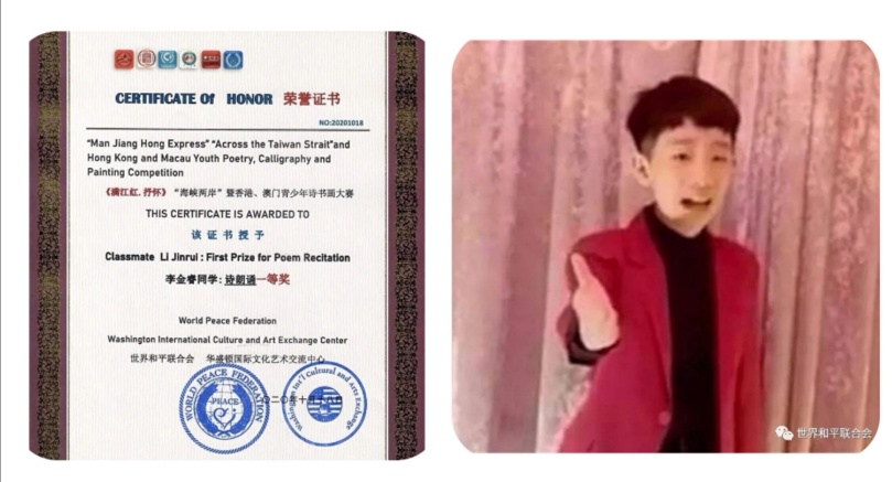 10月18日,相关单位举行了《满江红· 抒怀》“海峡两岸”暨香港、澳门青少年诗书画大赛的线上颁奖典礼。