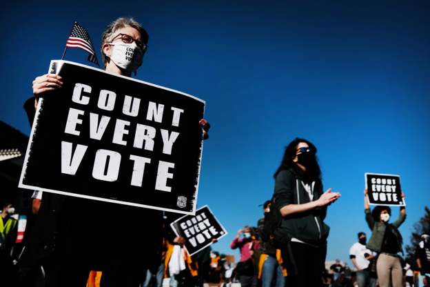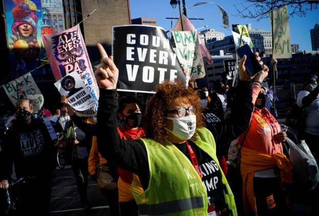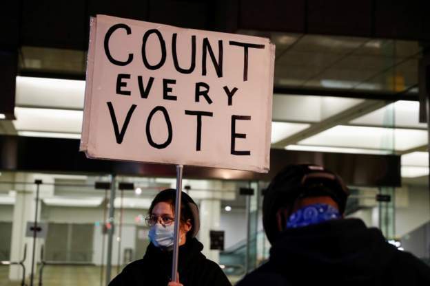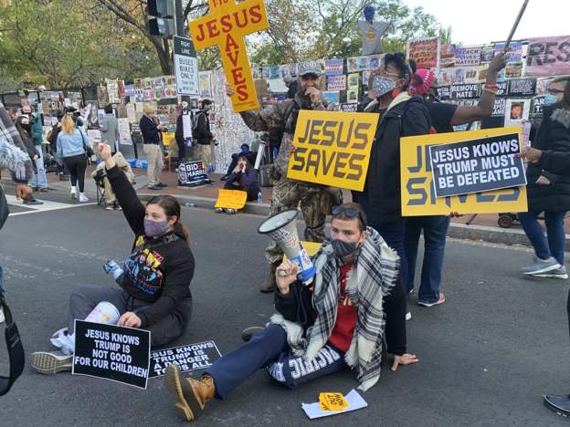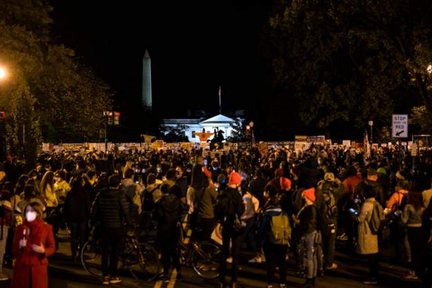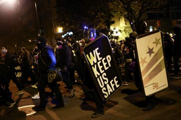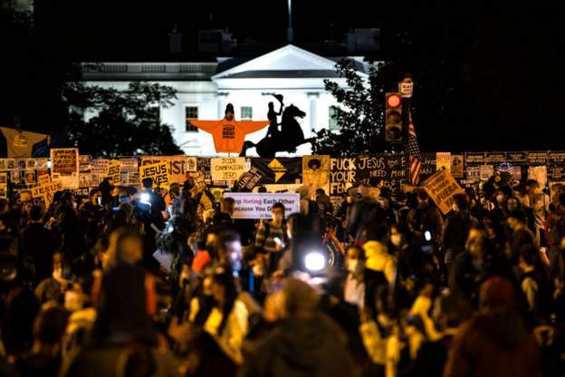 在首都华盛顿,数百名示威者已聚集在白宫门前的“黑人的命也是命”广场,铺开写有“清除特朗普”字样的条幅。预计随着选举结果进一步揭晓,更多的示威者将会聚集在此处,向今晚留守白宫的总统特朗普施压。