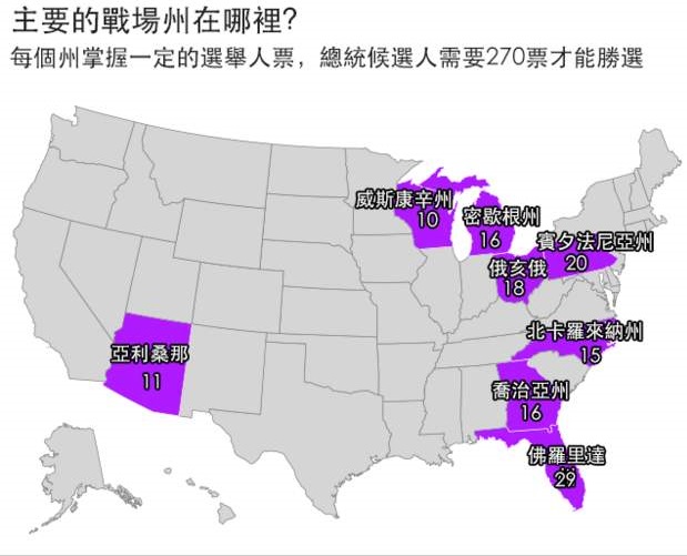 每赢得一个州,就会令他们离270张选举人票的目标更近一步。