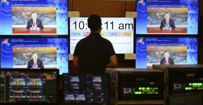 习近平在此次APEC峰会正式开幕前的工商领导人峰会上发表讲话中称,目前全球已经进入了“共抗新冠肺炎疫情、探索世界经济复苏道路的重要时刻……新冠肺炎疫情全球大流行,推动世界百年未有之大变局加速演进。”虽然在演讲中没有直接点名或针对美国,但从他“单边主义、保护主义、霸凌行径上升”的描述中,可以看出他发言针对的方向。