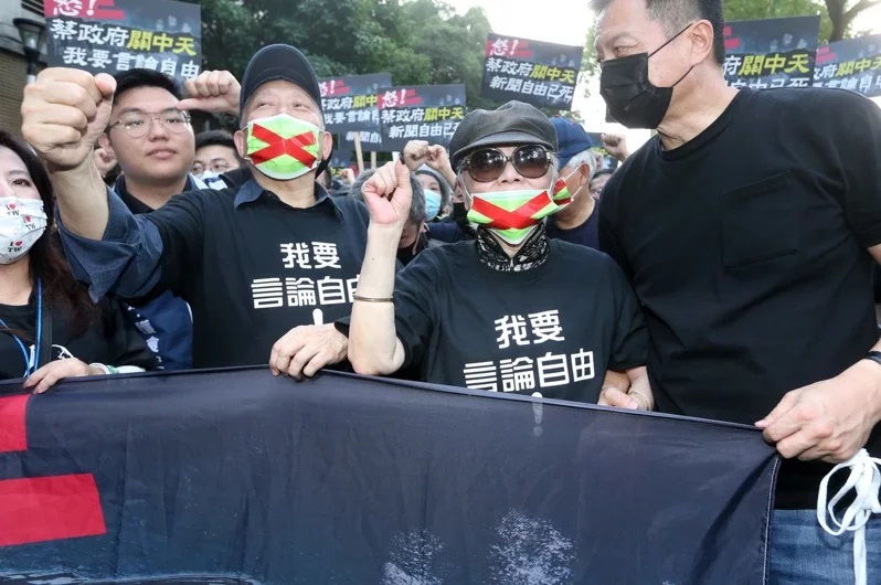 遊行其中一個訴求是言論自由,主辦單位在活動舉行前強調不是「挺中天」,但現場仍有不少示威者聲援早前被當局拒絕續牌的中天新聞台。