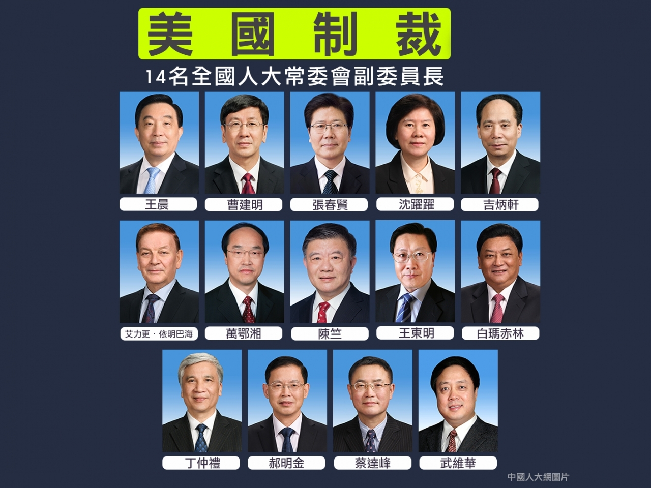 美國國務院宣布制裁14名全國人大常委會副委員長,指他們有份導致4名香港民主派人士,被取消立法會議員資格。