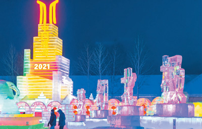 新年伊始,游客在“神州北极”漠河的冰雪乐园游玩。  新华社记者 谢剑飞摄
