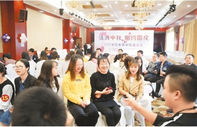 2020年9月30日,湖南省桂东县城三台山休闲酒店娱乐厅,青年男女正在联谊交友。  邓仁湘摄(人民视觉)
