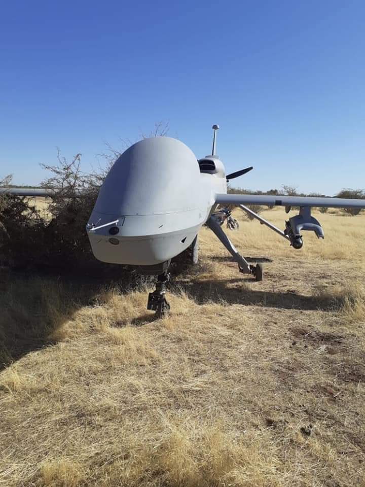 海外网1月25日电 当地时间1月23日,美军一架尖端的MQ-1C“灰鹰”因发生机械故障,在尼日尔阿加德兹市郊区紧急迫降。照片显示,无人机停在牧场中,机翼下还悬挂一枚“地狱火”导弹。