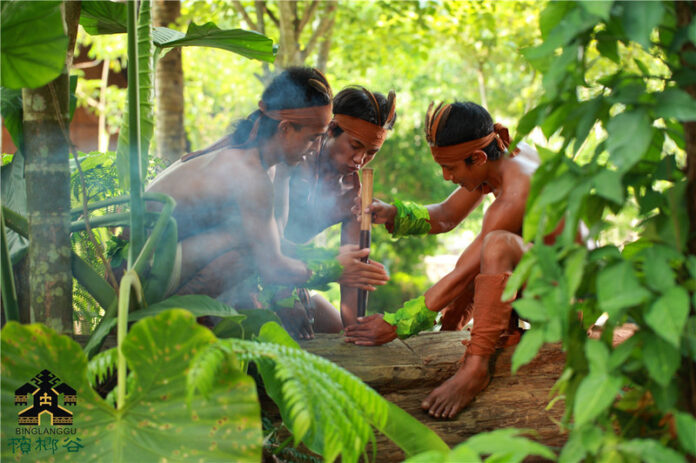 如今海南黎族钻木取火技艺不仅是一份文化遗产,还是一项表演艺术,受到人们的重视和保护。槟榔谷演出项目中,钻木取火更是作为重要的表演环节,为来自全国各地的游客展示这象征着繁荣兴旺的古老仪式。