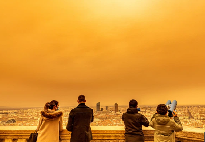 海外网2月7日电 外媒称,近日撒哈拉沙漠的沙尘暴刮到了法国,多地的天空变成了橙色,滑雪胜地也被染成了黄色。