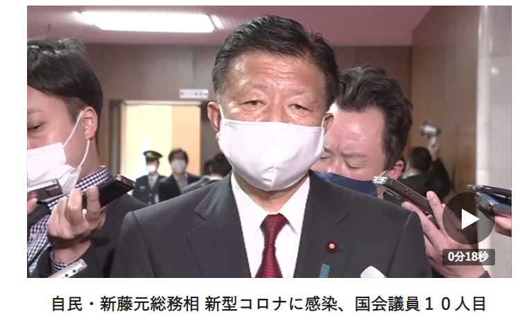 海聚推荐 日本前自民党总务相确诊新冠 系国会议员第10位感染者 18 2 月, 2021 日本TBS电视台截图 海外网2月18日电 据日本TBS电视台17日晚消息,原日本安培内阁总务相新藤义孝确诊新冠肺炎。 新藤义孝现年63岁。日本众议院称,新藤于17日确诊感染新冠病毒,随后在自家疗养。他是日本国会议员第10位感染者。(海外网 王珊宁) 本文系版权作品,未经授权严禁转载。海外视野,中国立场,浏览人民日报海外版官网——海外网www.haiwainet.cn或“海客”客户端,领先一步获取权威资讯。