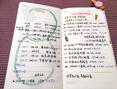 图为“90后”女孩小巩向记者展示的2020年护肤品支出账单。本报记者 张一琪摄