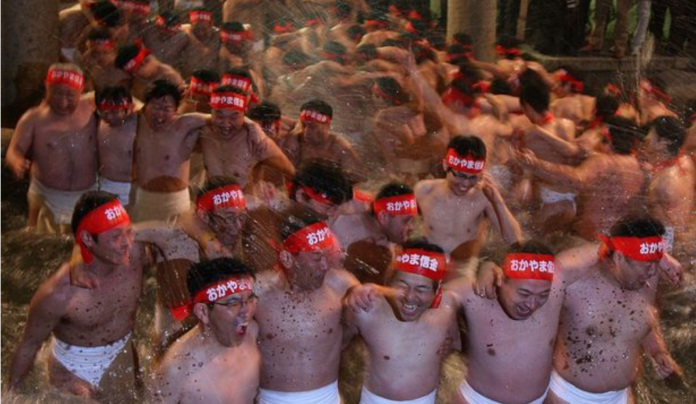 日本冈山一年一度的“Hadaka Matsuri” (意为“光身节”)历史悠久,据说开始于1000年前。该传统节日也被称为Eyo,通常在每年2月的第三个星期六举行。它与当地术语“一友一福”(ichiyo-raifuku)相关,意义为“抵御严酷寒冷的冬天,到达温暖的春天”。